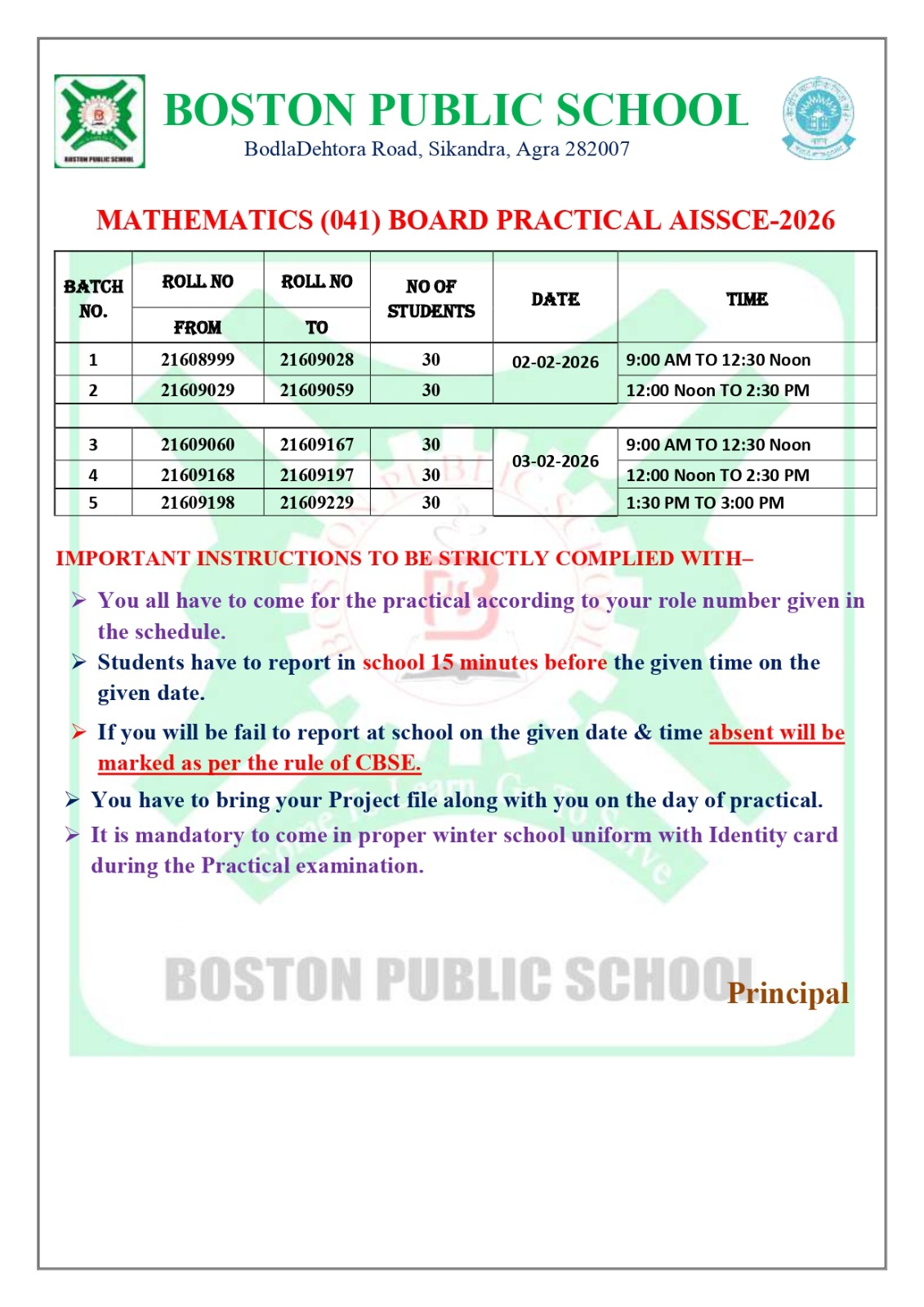Roll Nos For XII Board Examinaton 2026