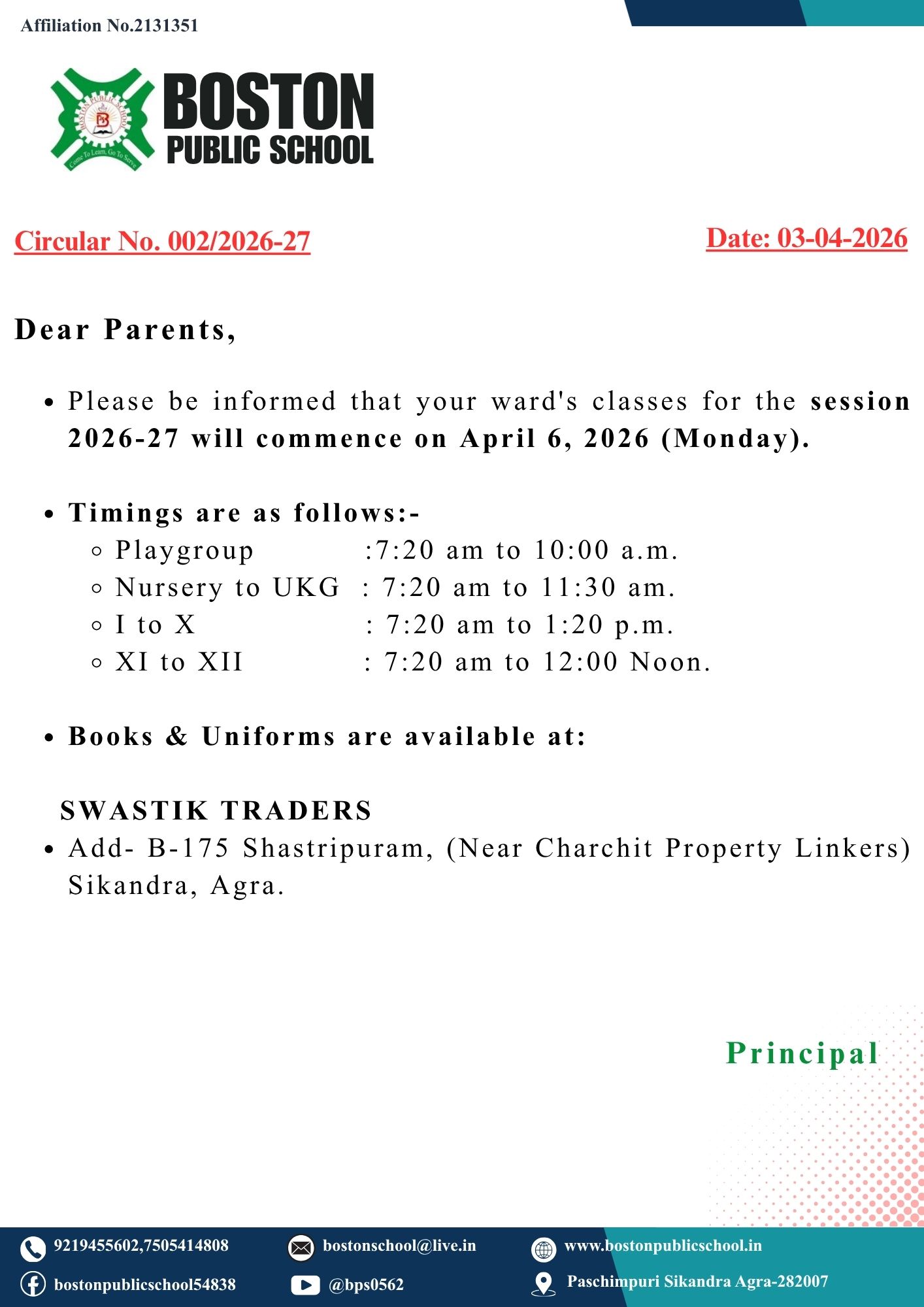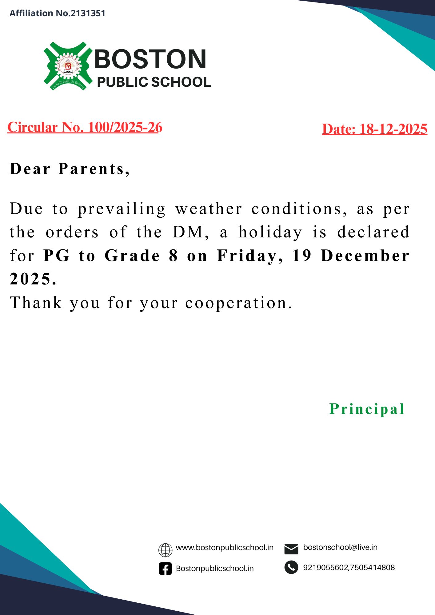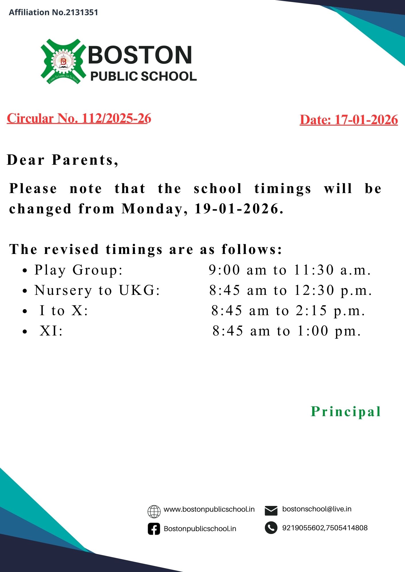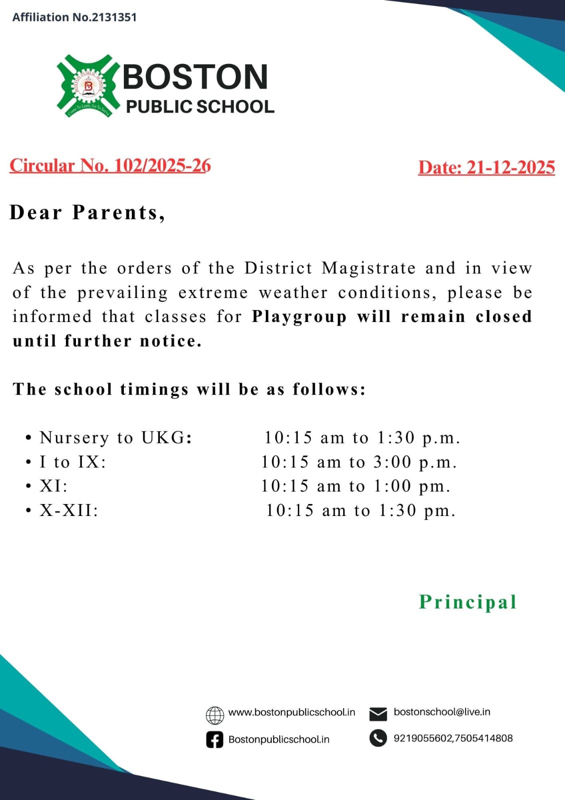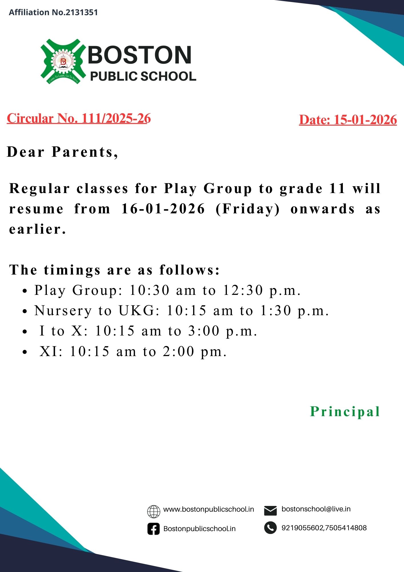 Circular No. 036/2025-26 (Play Group to UKG)