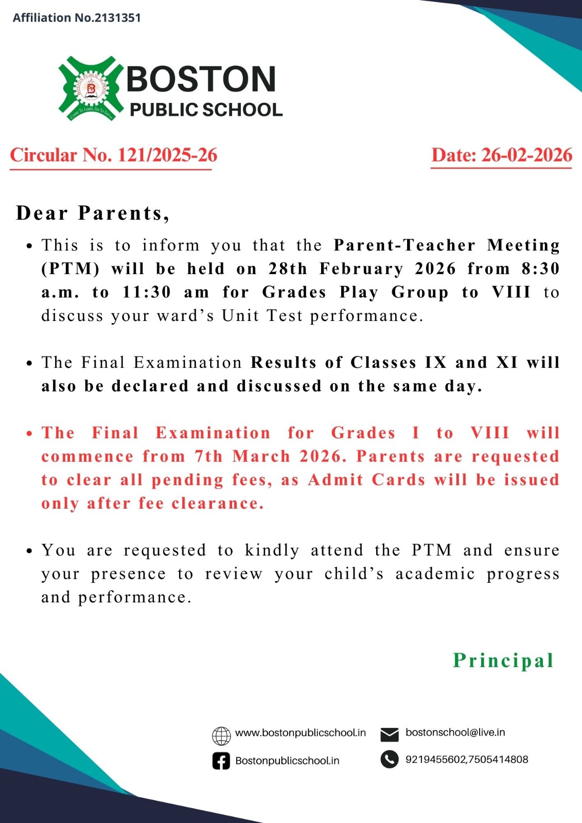Circular No. 027/2025-26 (X & XII)